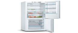 Frigorifico Combi No Frost - E 2021 White color - VitaFresh Plus 0°C drawer - VitaFresh drawer with moisture regulator 186 x 60 x 66 cm (high x width x bottom) Energy efficiency class E 2021 Technology No Frost LED temperature display Independent regulation of temperature in the fridge and freezer Refrigeration 'Super' with automatic disconnection Open door optical and acoustic alarm Optical and acoustic alarm Special functions: Holidays and Eco VitaFresh cajon with moisture regulator for fruits and vegetables: it regulates moisture according to the type of food 2 VitaFresh 0°C drawers: it reaches a temperature close to 0oC prolonging its conservation VitaFresh Plus 0°C for meat and fish LED interior lighting, and also with SoftStart effect High capacity chromed botellero White Doors - Lanco Side - Integrated Side Shooters Sitting opening doors to the right - Reversible Useful capacity refrigerator/freezer: 237/89 litres Net capacity vitaFresh 0oC: 24 l Frost power: 14 kg/24 hours Autonomy 16 h Sound power: 39 dB(A) re 1 pW Energy consumption: 238 kWh/year Dimensions (high x width x bottom without puller): 1860 x 600 x 660 cm (with puller) Frigorífico combi with VitaFresh drawer: Keep your food fresh for longer. Cajones VitaFresh: They keep the freshness and vitamins of your food for longer - thanks to their lower temperatures for meat and fish and the optimal humidity for fruits and vegetables. No Frost: automatic throbbing - saves time and effort. 2 independent cold circuits: independent control of the fridge and freezer - avoids the transfer of odours. LED interior lighting: uniform and efficient, lasts the entire life of the appliance. EasyAccess Band: Extendable Crystal Trays to comfortably load and download food with perfect visibility. Refrigeration 'Super' function: cools freshly purchased foods even faster and protects already refrigerated foods Super' freeze: temperature rise for a better and fast food freeze. Perfect installation: the fridge can be installed between furniture or next to the wall. Replaces KGN36VW3A